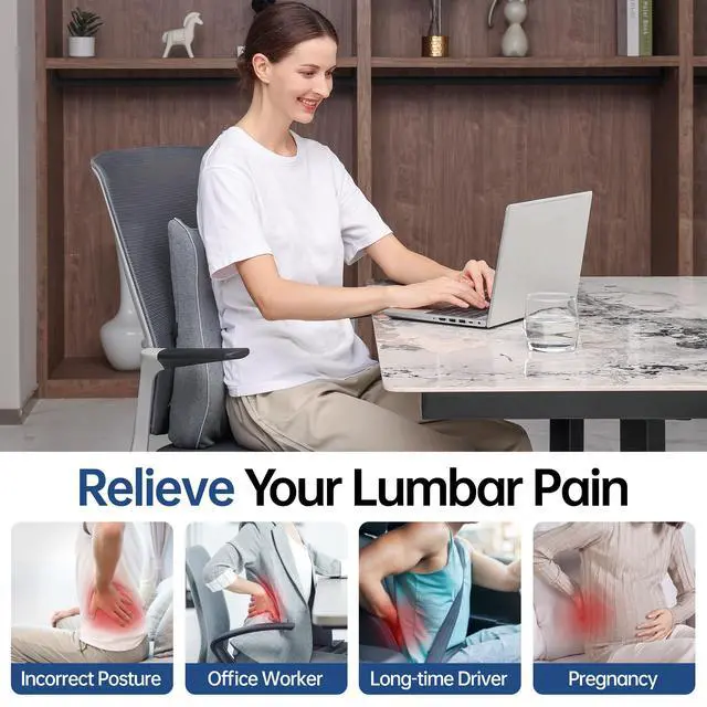 Ergonomic Lumbar Support Pillow Effectively Relieves Back Pain & Improves Posture: Our Back Support Pillow Provides Full Support for Upper, Mid & Lower Back, Reduces Muscle Tension from Prolonged Sitting. Perfect for Office Workers, Drivers, Gamers and Daily Use