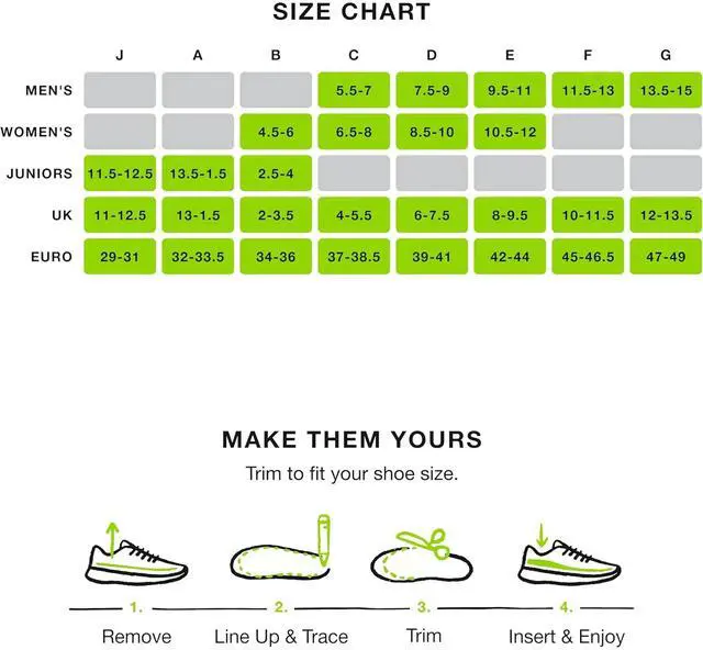Trim to Fit: Superfeet insoles are made to be trimmed to fit your shoes and boots; follow cutting instructions before use, and if you're between sizes, size up and trim down to fit