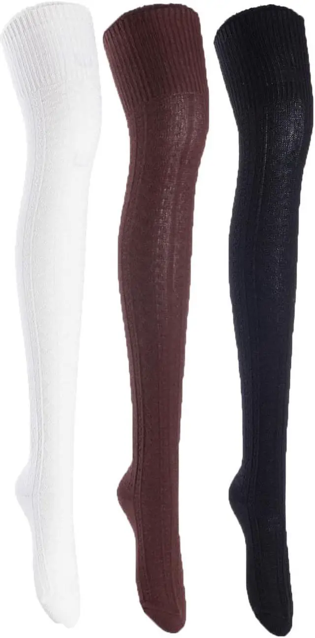 Lian LifeStyle Women's 3 Pairs Fashion, Super Comfortable and Ultra-Soft Thigh High Natural Cotton Socks L1025 Size 6-9(Cream,Coffee,Black)