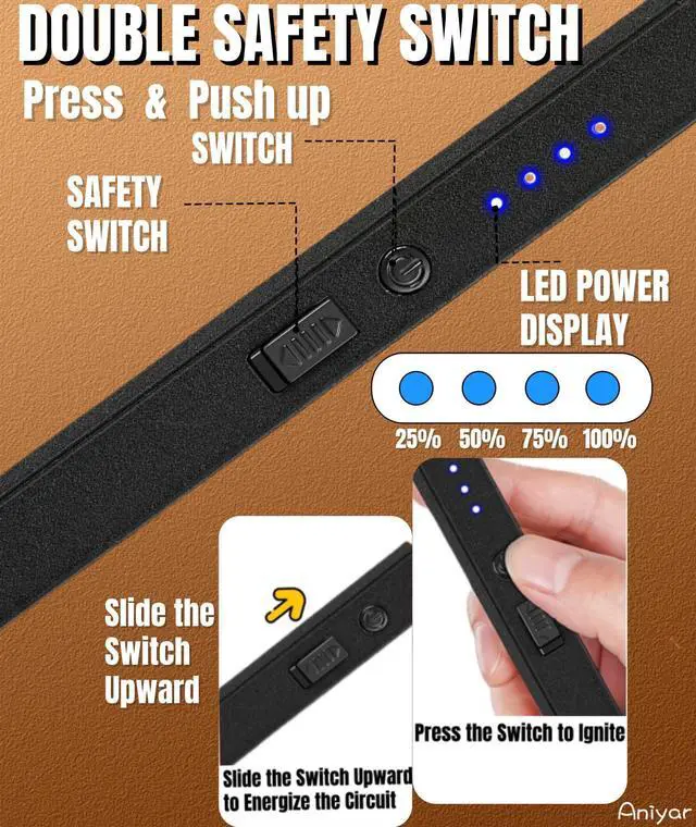 Multi-Safety Protection: Our electric lighter features a dual safety lock designed with child safety in mindyou must first press the safety lock switch, then the ignition button to activate it. Additionally, it includes an auto-shutoff safety feature: the arc automatically turns off after 7 seconds of use for added protection.