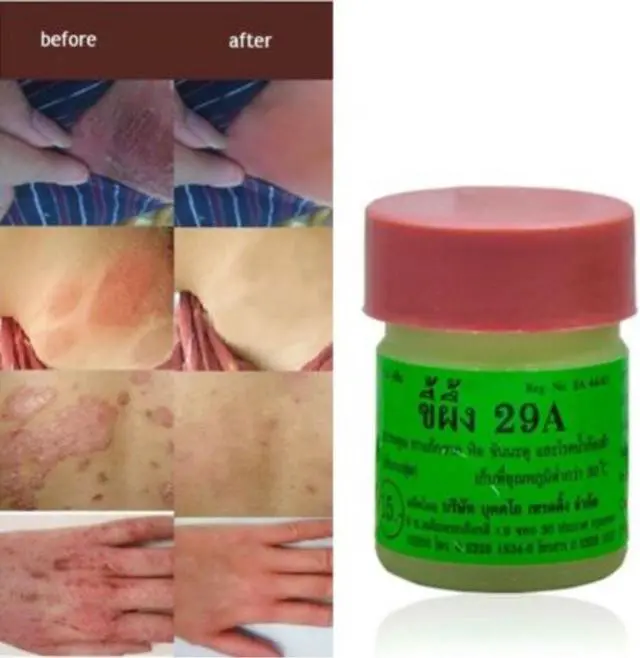 Distributed by Skinlastics - this ointment is well-know thai treatment for ringworm, scabies, scald head, tinea pedis or white spots that contains antimicrobial and antifungal agents with a slight antiseptic action. It's very safe and approved by thai FDA.