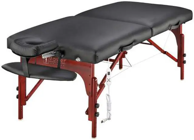 The extra-wide 31" Montclair ThermaTop provides everything necessary for a high quality massage, and then some! Besides the sophisticated style of the black PU oil- and water-resistant upholstery, the Montclair's patented ThermaTop built-in adjustable heating system means every square inch of the wide cushioned surface can be calibrated to the perfect temperature to soothe clients' muscles and improve circulation. The wide shouldered Big Top bed provides 26% more cushioned space within the same size footprint as standard tables, and that cushioning consists of 3" thick Multi-Layer Small Cell foam which a layer of memory foam is included. Extra features such as the double thickness Reiki panels that allow the therapist to massage from a seated position and the Shiatsu cable release so the table can be laid flat on the floor make the Montclair an undeniably great buy. This professional package includes a six-way adjustable ErgonomicDream face cradle, memory foam ErgonomicDream face pillow to relieve pressure points, contoured armrest shelf and four-pocket carrying case.