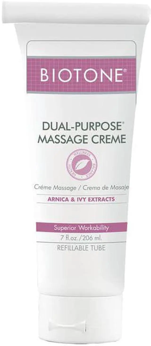 Dual Purpose Massage Creme, Therapists' trusted choice for over 30 years, provides a superior combination of an oil's workability and a lotion's absorbency. Arnica and Ivy Extract's botanical qualities are the first choice for relief and provide added skin health and wellness benefits.