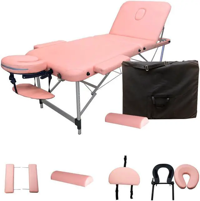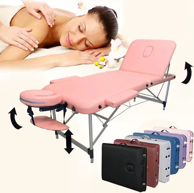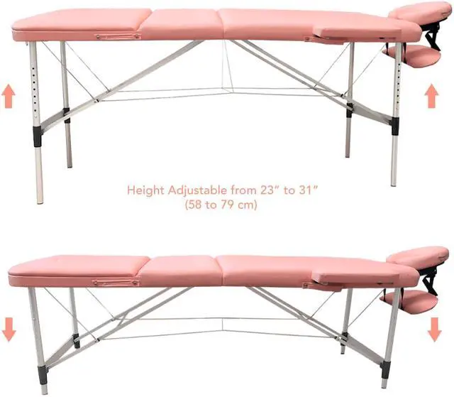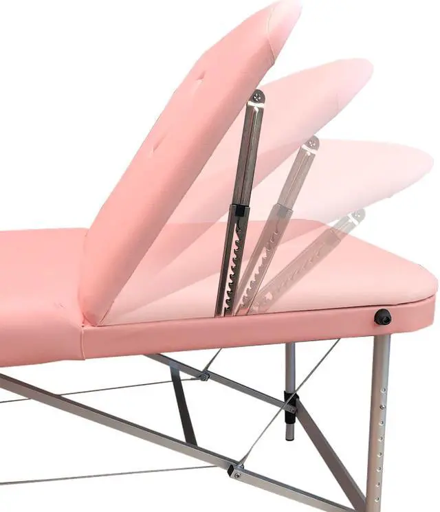 "This sturdy aluminum frame massage table has a 4cm high density cushion. This is a 3 section massage table so the third section can be raised up as a back support for clients seat during all or some of the treatment, instead of remaining flat. The back rest is very handy for certain treatments like reflexology, acupuncture, head massage, sports leg treatments, beauty treatments and when you want to prop clients up at the end of the treatment to let them catch themselves before getting up of the table.