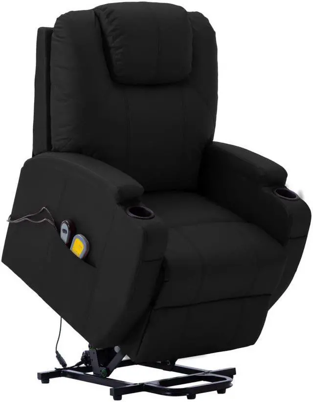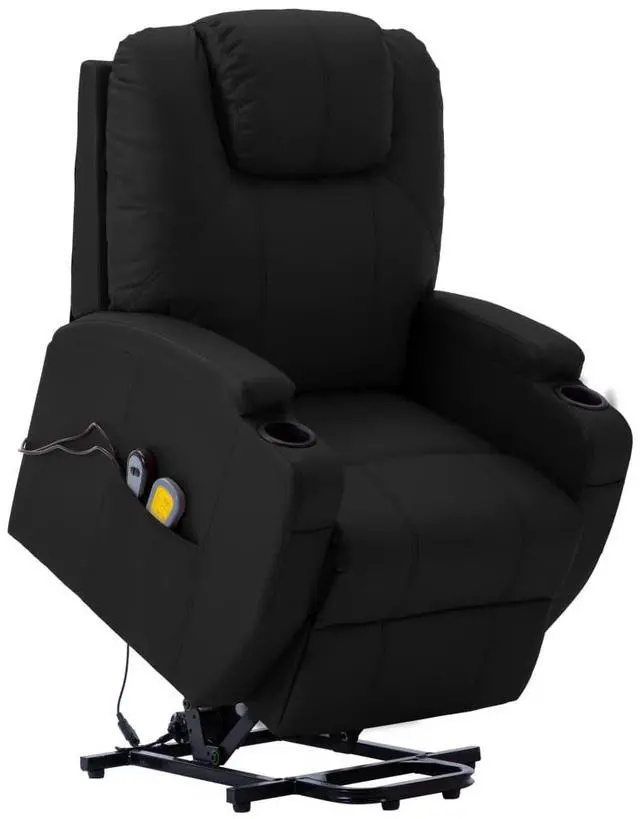 Our stand-up chair is an excellent seat for your living room or the office. This stand-up massage recliner is made of faux leather and iron base and filled with different kinds of cotton, making it stable and soft to be seated. The electric chair features lifting and reclining functions, which is perfectly suitable for elders that need some help while sitting and getting up from a chair. This massage reclining chair is also suitable for people with spinal issues, joint problems and balance issues. It can be adjusted to suit the heights of different users through remote control. Additionally, the power lift recliner has 6 massage points for the head, neck, back and legs and the massage points send out relaxing vibrations. This massage stand-up chair is also equipped with 2 cup holders for your drinks and the side pocket for the remote control.