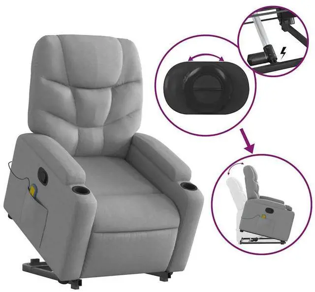 Sit back and drift away in this highly comfortable stand up massage recliner chair! Power lift function: This recliner chair for the elderly is equipped with an electric motor for the lifting-up function. Thanks to the function that pushes the entire chair up, you can easily stand without stressing your back and knees with a simple press of the button.