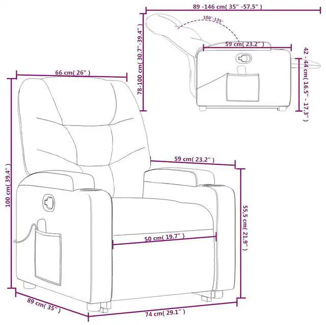 Solid and stable frame: The frame made of wood and metal provides a strong structure and stability. This reclining armchair is comfortable and durable.