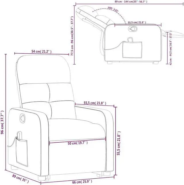 Solid and stable frame: The frame made of wood and metal provides a strong structure and stability. This reclining armchair is comfortable and durable.