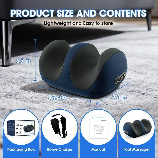Pain Relief & Circulation Boost The foot massager's dual-rotating massage heads simulate soothing professional kneading techniques, delivering deep acupressure massage. Its targeted pressure points and professional massage methods effectively relieve plantar fasciitis and muscle tension while promoting blood circulation. After intense work or exercise, the comforting massage experience reduces stress and aids restful sleep.