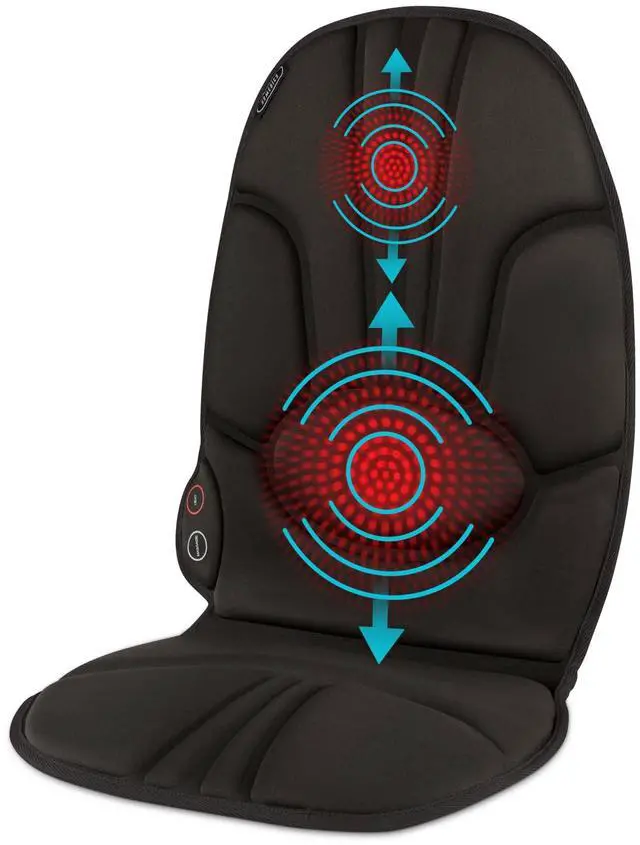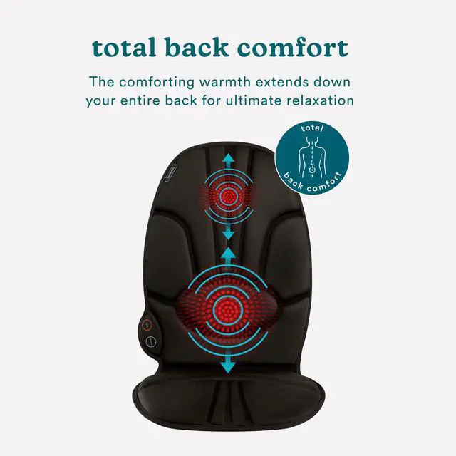 Enjoy a relaxing massage at home or on the go. The Homedics® Portable Back Massage Cushion offers rejuvenating vibration waves that leave back muscles feeling great. The optional heat setting penetrates deep to deliver an enhanced massage and keep you warm. Integrated controls let you choose high or low intensities for a customized massage every time. Use at home to easily get back to relaxation.
