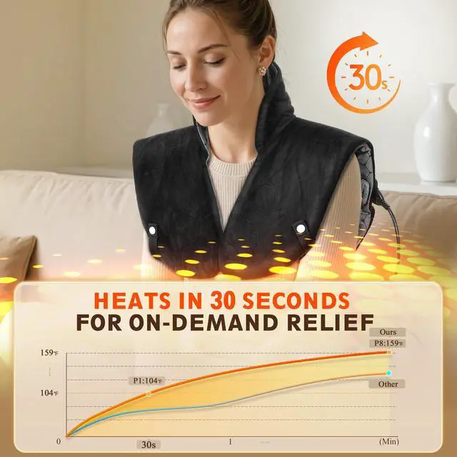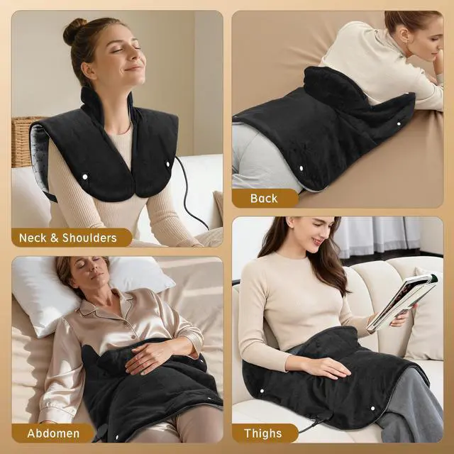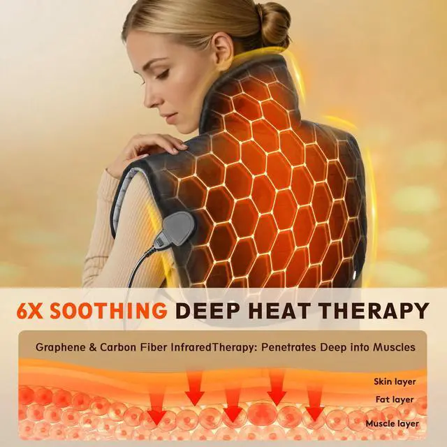 - Ergonomic Design for Unbeatable Comfort Unlike other neck heating pad for neck pain electric on the market, this weighted neck and shoulder pad is evenly filled with 2 pounds of tourmaline stones. This makes it softer, more body-hugging, and able to stay securely fitted to your shape. Even better: when heated, the tourmaline stones quickly release a surge of negative ions. When you use itjust drape it over your shouldersyoull feel the fresh, crisp sensation from these ions, like the air near a forest or waterfall. It adds extra relaxation and even helps improve your sleep! Plus, it works great for easing stiffness in your back, waist, abdomen, legs, and arms too.