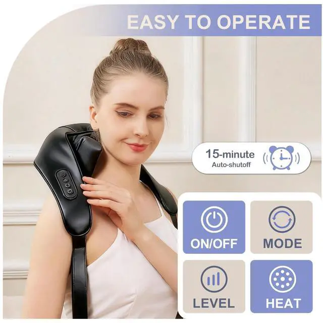 Deep Kneading Shiatsu Massage: Our neck and shoulder massager features 6 deep-kneading rotating nodes that expertly mimic the soothing motions of human fingers and thumbs, delivering a deep tissue kneading experience right in the comfort of your home, office, or even on the road. This deep tissue kneading action effectively targets pressure points in your neck, shoulders, and upper back, helping to relieve built-up tension, improve circulation, and melt away stress.