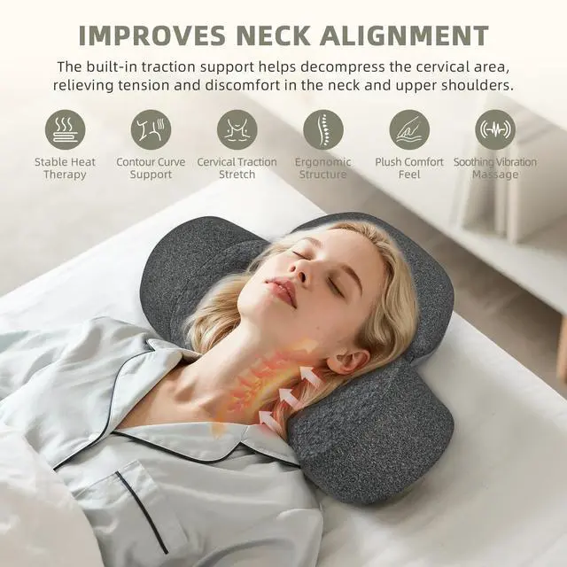 Use as a cervical neck pillow for sleeping, with gentle heat and vibration before bedtime.
