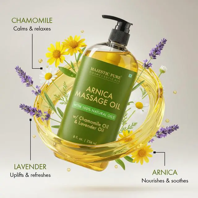 Majestic Pure Arnica Sore Muscle Massage Oil Lotion is designed specially so you can look and feel your best.