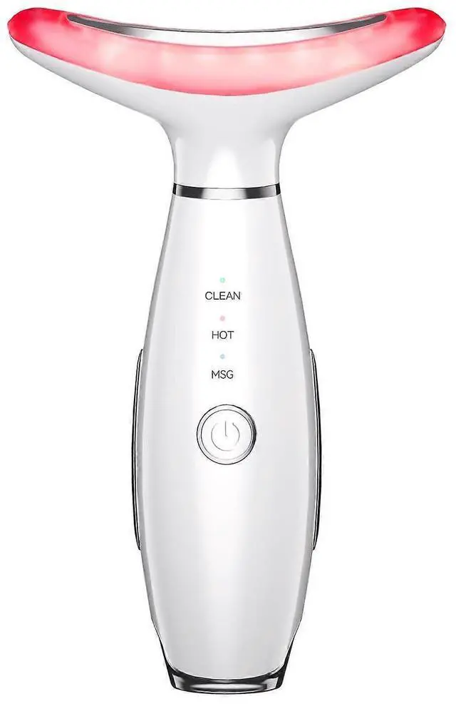 Elevate your at-home skincare routine with this versatile facial and neck massager. Featuring triple-action technology, it combines LED light therapy, soothing heat, and adjustable vibrations to rejuvenate your skin.
