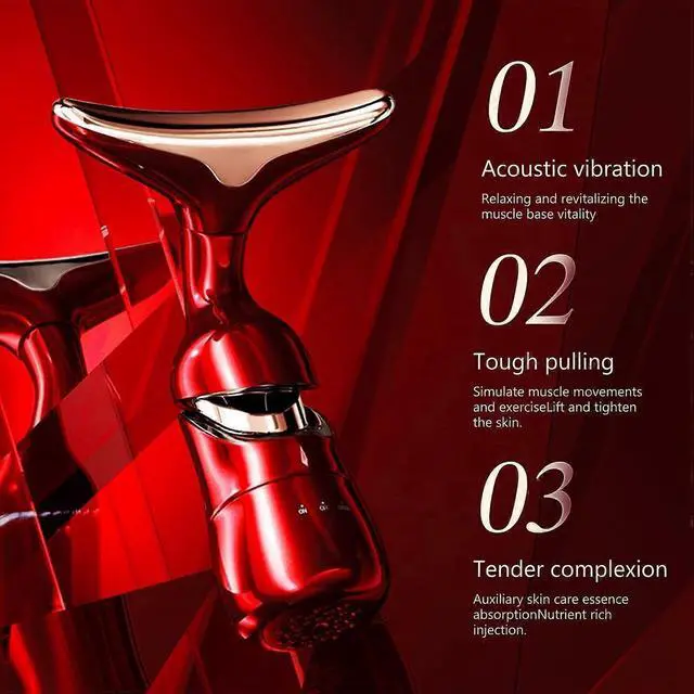 Transform your skincare routine with our red ergonomic 3-in-1 beauty massager, featuring acoustic vibration technology for deep, effective skin care.