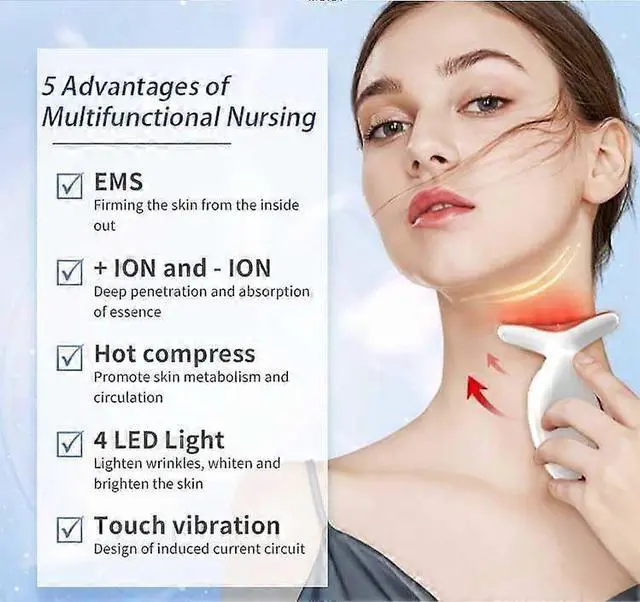 Ergonomic Bipolar Massage Head: Designed with a concave fishtail shape for face and neck, promoting blood circulation and delaying skin aging.