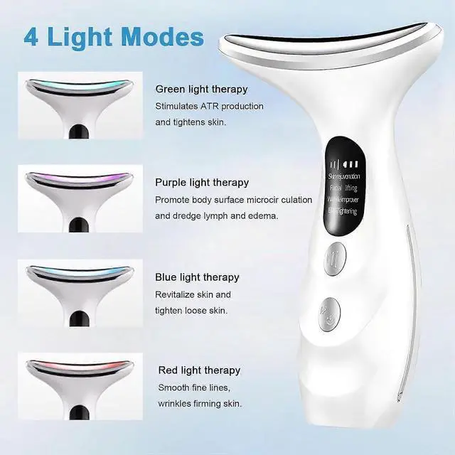 Revitalize your skin with our advanced 4-mode EMS neck massager, featuring 45°C microcurrent technology and LED light therapy for a youthful, lifted appearance.
