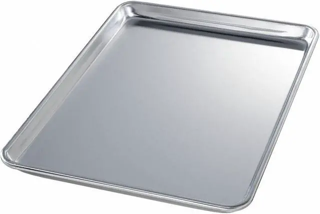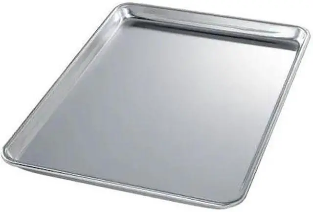 Sheet Pan, Sheet Pan Size One Half, Material Aluminum, NSF Certified No, Oven Safe Yes, Product Type Sheet Pan, Dishwasher Safe No, Freezer Safe No, Perforation Solid, Color Silver, Overall Length 17 3/4 in, Overall Width 12 7/8 in, Overall Depth 1 in, Gauge 18 ga, Bead Closure Closed Bead, Overall Diameter Not Applicable, Coating Glazed. This item has been restricted from sale in the following state (s): []