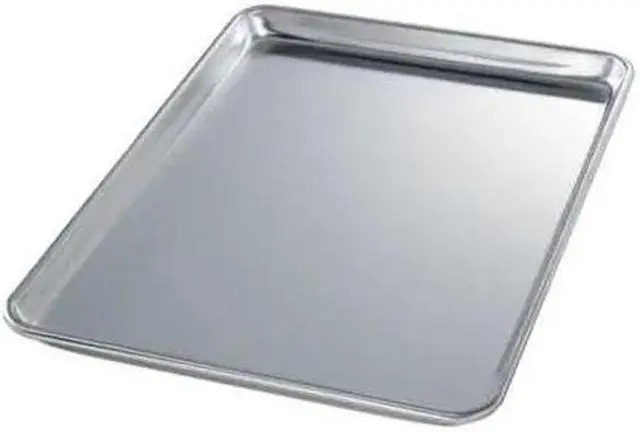 Sheet Pan, Sheet Pan Size One Half, Material Aluminum, NSF Certified No, Oven Safe Yes, Product Type Sheet Pan, Dishwasher Safe No, Freezer Safe No, Perforation Solid, Color Silver, Overall Length 17 3/4 in, Overall Width 12 7/8 in, Overall Depth 1 in, Gauge 18 ga, Bead Closure Closed Bead, Overall Diameter Not Applicable, Coating Uncoated. This item has been restricted from sale in the following state (s): []