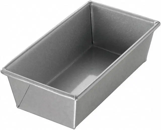 Bread Pan, Gauge 26 ga, Material Aluminized Steel, Dishwasher Safe No, Oven Safe Yes, Overall Length 9 in, Overall Width 5 in, Overall Depth 2 3/4 in, NSF Certified No, Number of Slots 1, Pan Style Open Top Bread Pan. This item has been restricted from sale in the following state (s): []