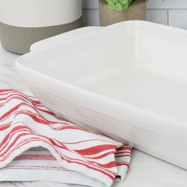This Bee and Willow 4 Quart Rectangular Stoneware Baker in White Speckle is the perfect addition to your kitchen bakeware. Made of gorgeous stoneware, this baker is dishwasher, microwave, and oven safe making it a great choice for any recipe you find yourself making. The modern and simple white color with the subtle speckles fits in with any style so everyone can enjoy it. At a 4 quart capacity, this baker is a standard size perfect for anything you desire. Don't wait, see yourself with this fantastic baker today!