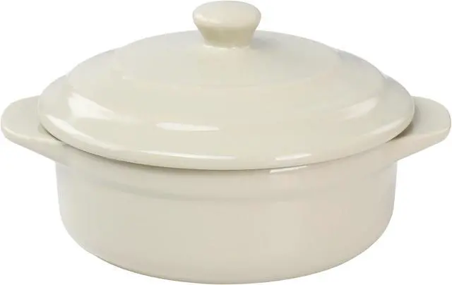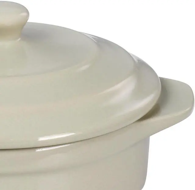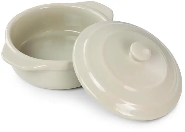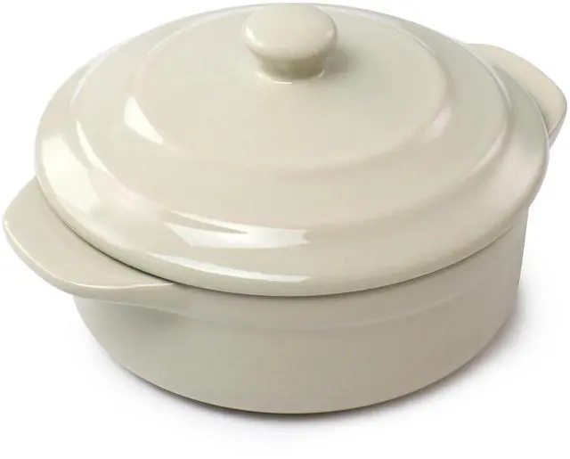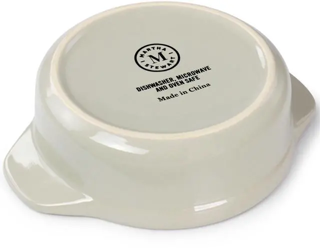 Serve up your favorite single serving meals, sides, sauces, desserts and more with this mini casserole by Martha Stewart. This 5in round casserole dish is the perfect size for single serving baked meals. Serve guests in style with their own dish or take this two piece casserole out when you simply need a meal or dessert for one. Constructed of durable stoneware material with a beautiful glossy finish that is dishwasher, microwave, and oven safe for long lasting use. Side handles and lid knob make transport from oven to table easy, handle with care when heated.
