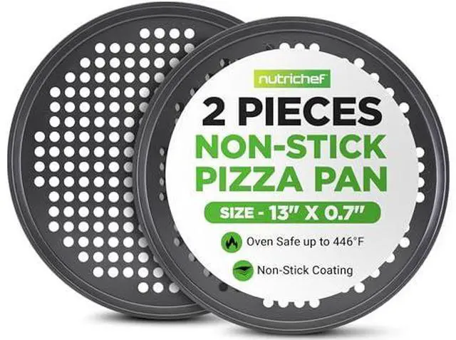 Elevate your baking experience with the NutriChef 2-Pack 13 Non-Stick Pizza Pans. Crafted from commercial-grade carbon steel, these durable pans are designed to handle high temperatures up to 446°F (230°C), ensuring your pizza is baked to perfection every time. The stylish gray non-stick coating ensures effortless cleanup, while being dishwasher safe and resistant to stains. These versatile pans are perfect for baking pizza, cookies, and other treats, delivering consistent results for all your baking needs. Built to last, theyre the reliable, eco-friendly addition to your kitchen.