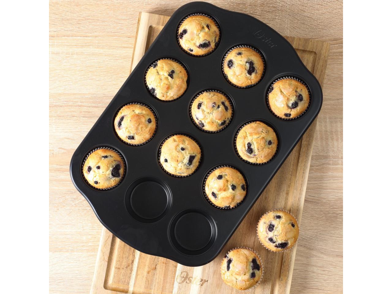Oster Teston Platinum Collection 12-Cup Nonstick Carbon Steel Muffin Pan in Matte Black
