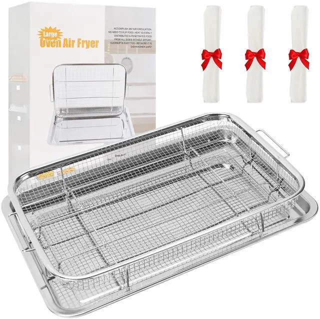 Air Fryer Basket for Oven, 15.5" x 11.6" Air Fryer Tray and Pan with 100 PCS Parchment Papers, Stainless Steel Non-stick Oven Air Fryer Basket for Cooking Baking and Crispy Foods