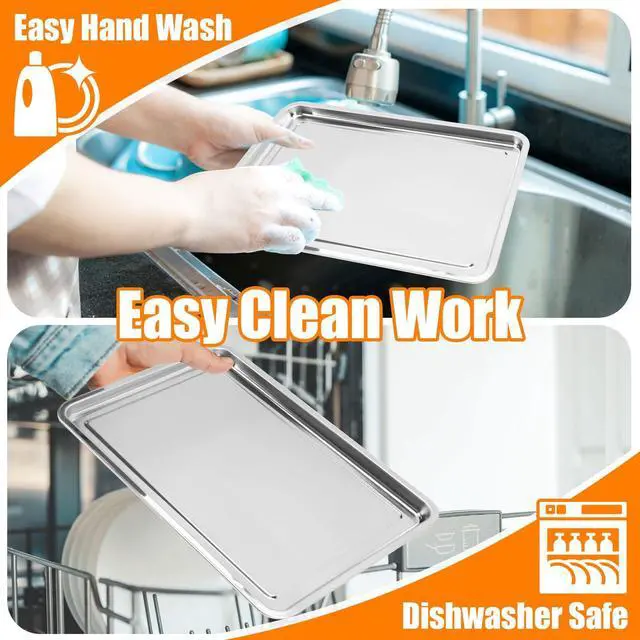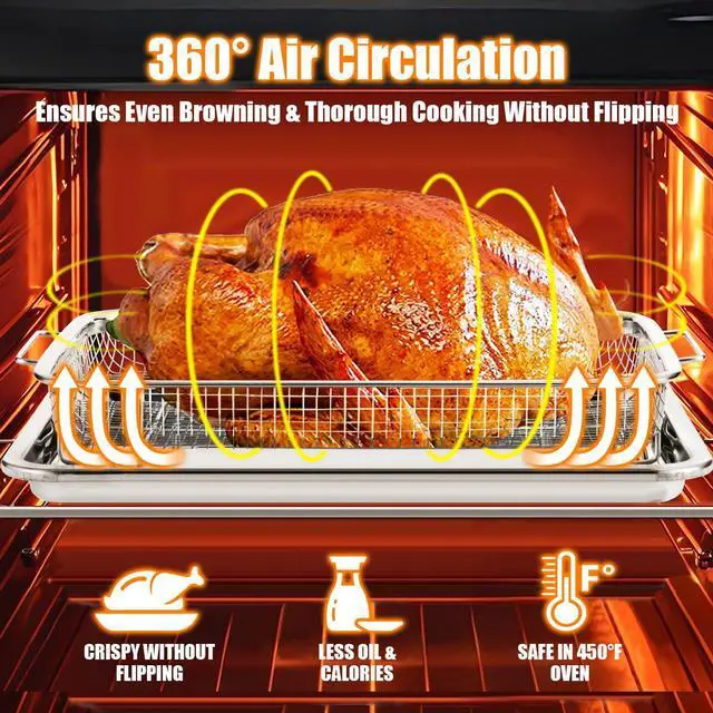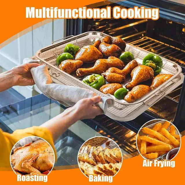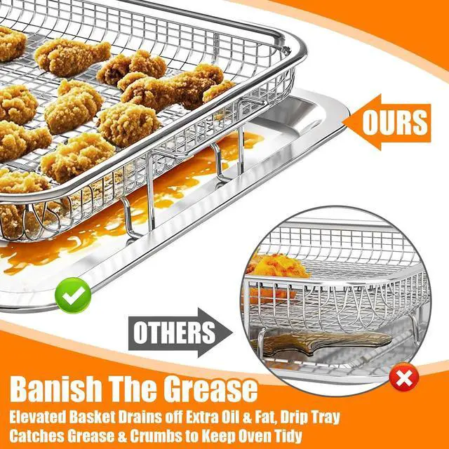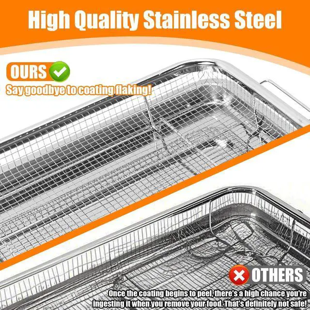 Heat-Resistant & Warp-Free ConstructionCrafted from heavy-gauge stainless steel, our tray is built to withstand high oven temperatures up to 500°F without warping. Say goodbye to messy oil leaks and smoke caused by flimsy pans that buckle under heat.