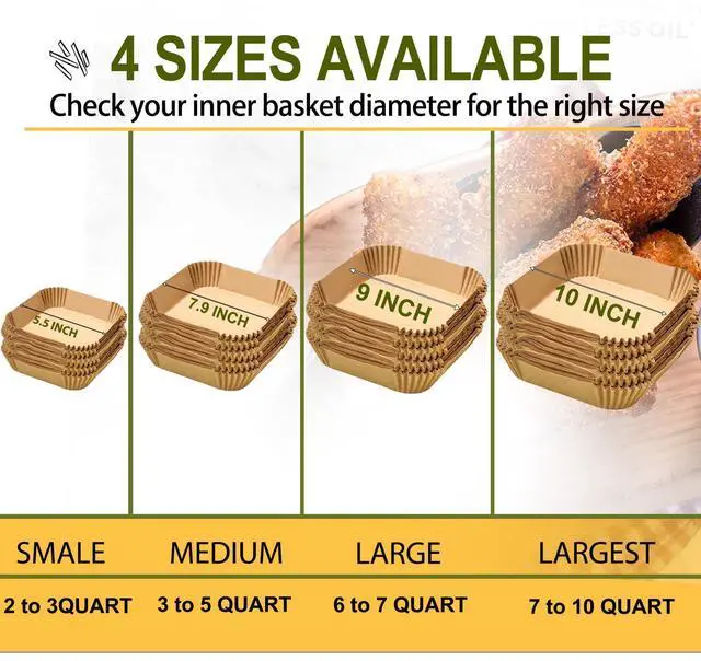 ![]() mini air fryer liners for 2-3QT | ![]() medium air fryer liners for 3-6QT | ![]() large air fryer liners for 5-8QT | ![]() largest air fryer liners for 8QT or biggeer | ![]() Rectangle Airfryer Paper Liners | |
