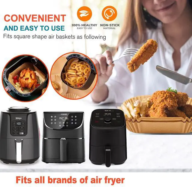 | For fryer models | Cosori Mini Air Fryer, Instant Vortex Mini, Chefman TurboFry, DASH Tasti-Crisp air fryer | Chefman 4QT air fryer, GreenLife 4.5QT Mechanical Air Fryer, Cuisinart Air Fryer | COSORI, Ninja,INSTANT,Chefman | Largest Square Air Fryer Paper Liners | Ninja DZ201 DZ401 DZ550 AD30CO.INSTANT Vortex Plus XL.SL401,COSORI | Ninja DZ201 DZ401 DZ550 AD30CO,INSTANT Vortex Plus XL,Ninja DZ201 DZ401 DZ550 AD30CSL401,COSORI |