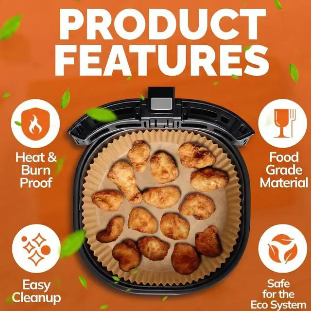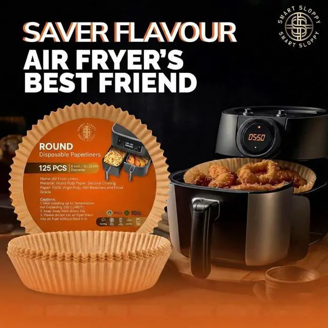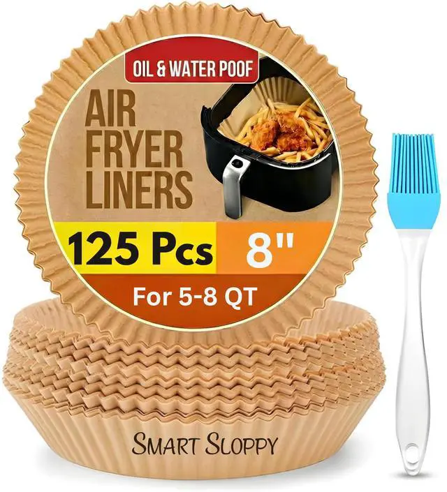 SMART SLOPPY 9 inch Square Air Fryer Liners Disposable Parchment Paper are the perfect air fryer accessories for every home cook. Designed to fit 812 QT air fryer baskets, these 40 GSM extra-thick parchment paper liners keep your fryer clean and your meals healthy. Crafted from unbleached parchment paper for air fryer, they are waterproof, greaseproof, and non-stick. Use them as air fryer paper liners, air fryer parchment paper liners, or square air fryer liners disposable for Ninja, Cosori, Chefman, and Gourmia models. These disposable air fryer liners withstand heat up to 428 °F (220 °C) without curling or burning. Each liner acts as a filter sheet that prevents grease buildup and food residue. Save time on cleaning and extend your air fryers life. Whether you call them airfryer liners, air fryer inserts, or air fryer paper sheets, they deliver consistent, crisp, non-stick results. Perfect for baking, roasting, frying, steaming, or reheating. With 125 pcs per pack, SMART SLOPPY provides unbeatable value for families and daily users. Enjoy effortless cooking with premium 8 inch air fryer liners disposable, made for healthier, cleaner, and smarter kitchens.