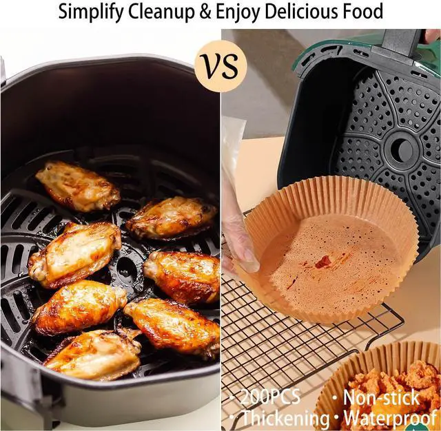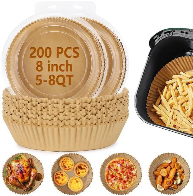Package: 200pcs air fryer paper liners, bottom width 8 inches, edge height 1.8 inches.