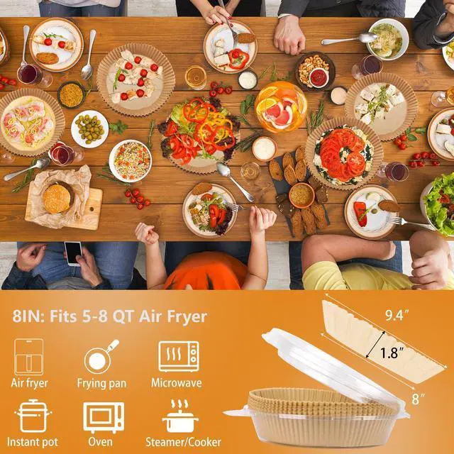 Keep Clean: This 8 inch air fryer paper liner is suitable for 5-8 QT air fryers. These disposable paper liners can effectively keep food residue away from fryer and make it as clean as unused, saving time and energy.
