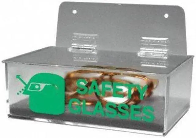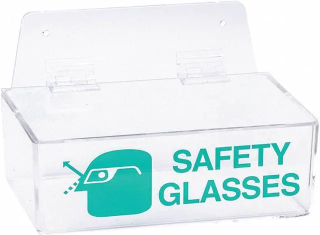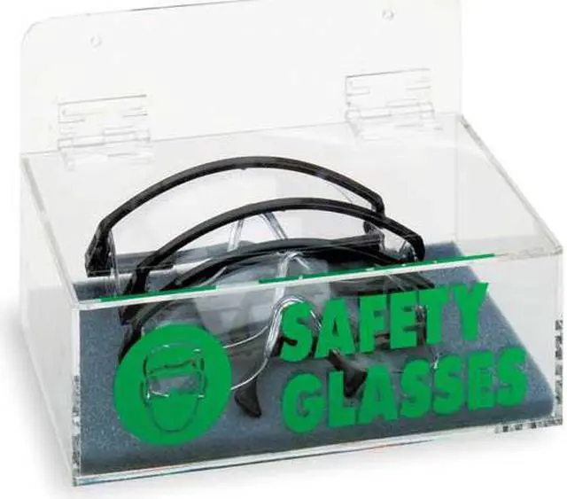 Protective Eyewear Dispenser, Style Tray, Clear, Material Acrylic, Holds Up to (6) Pairs, Height 3 in, Width 9 in, Depth 6 in, Wall Mounting Yes, Dispenser Lid Style Hinged Lid. This item has been restricted from sale in the following state (s): []