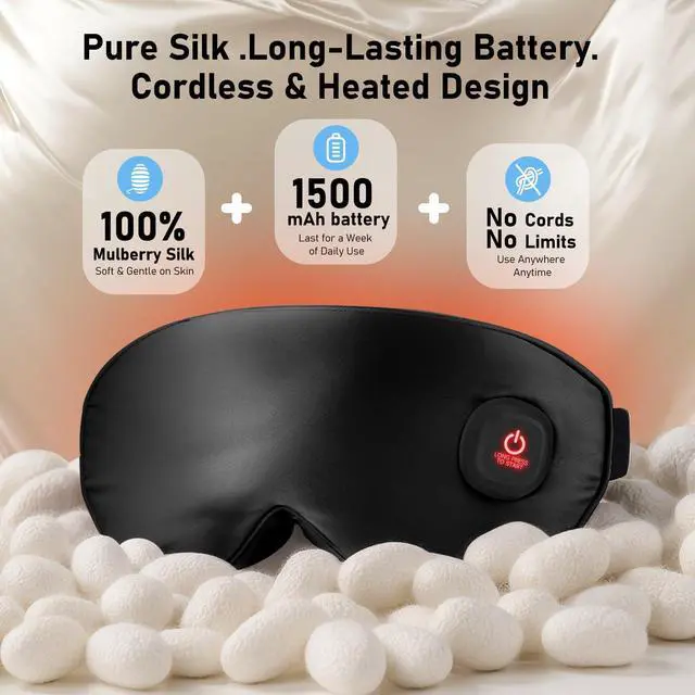 Cordless Silk Heated Eye Mask, Use it Anywhere Anytime