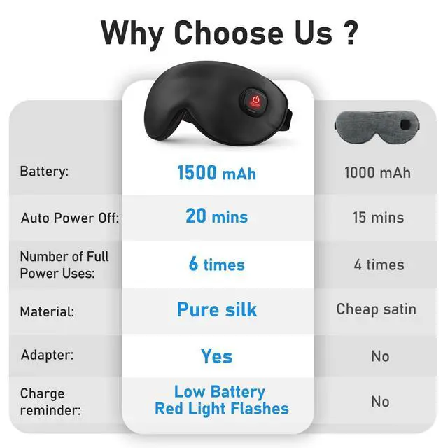 1500mAh Silk Heated Eye Mask — Lasts for 6 Times 20-minute Usage