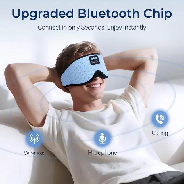 ZHENYEMEI Bluetooth Sleep Mask Headphones use the latest Bluetooth 5.4 chip, which has fast pairing speed and low power consumption. Bluetooth Sleep Headphones can be paired with any Bluetooth-enabled device within 45 feet and are compatible with most devices.