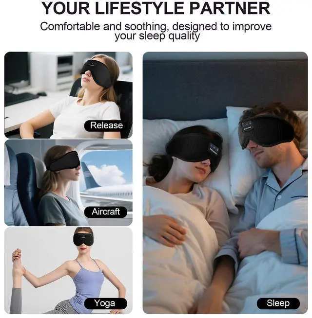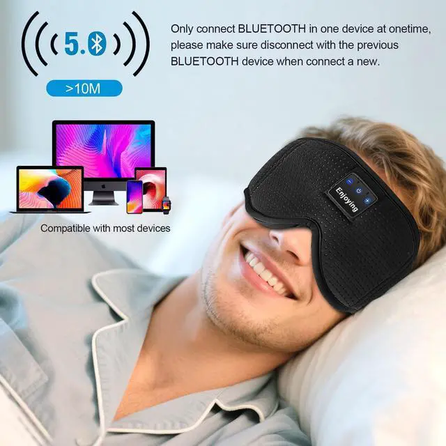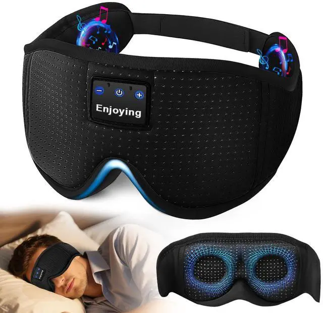 Upgraded 3D Contour Design & No Eye PressureOur sleep mask with bluetooth headphones based on ergonomics.Our eyes can move freely with the 3D contoured bluetooth sleep mask. With no pressure on eyes, the bluetooth eye mask can bring you a comfortable and long-lasting sleep.The bluetooth sleep eye mask is the perfect Sleeping Headphones for side sleepers,fall asleep fast, stay asleep and have a sweet dream