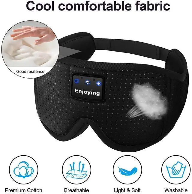 Super Breathable fabric with airholesBluetooth sleeping headphones is made of Breathable holes materials and the super soft memory foam fabric is very lightweight,skin-friendly,extremely stretchable. Bluetooth sleep headphones is washable just remove control pod first. Sleeping headphones Eye Mask are good choices