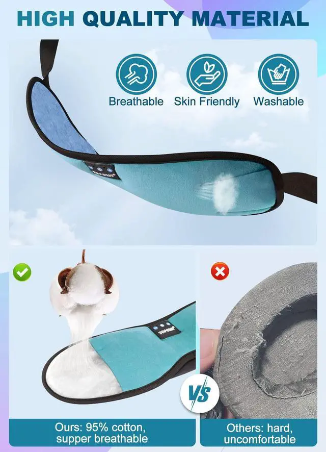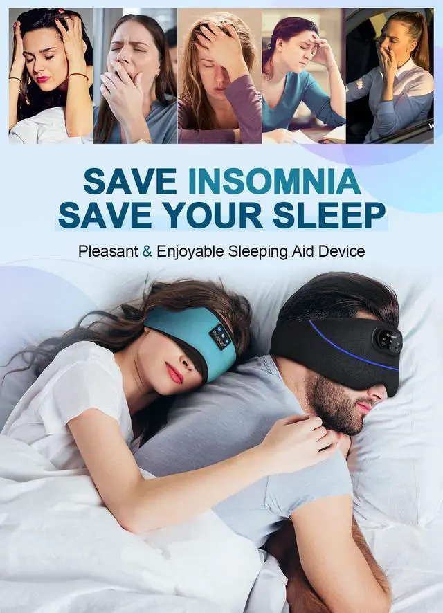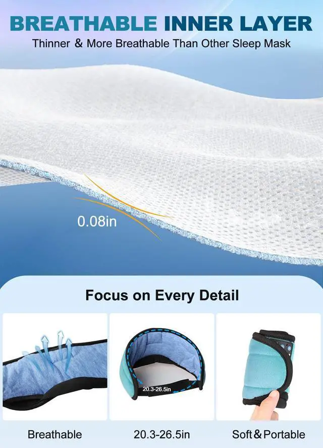 Bluetooth Sleep Mask Helps with Sleeping, Insomnia, Relaxation, Meditation and More, Perfect Light Blockout Anywhere, Anytime.