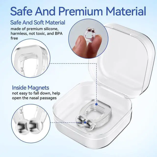 - The inside magnets are not easy to fall down, which helps open the nasal passages and promote the air flow, so that could stop snoring.