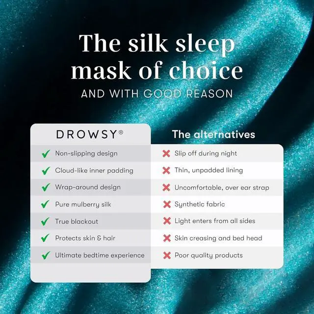 THE WORLDS MOST LUXURIOUS SLEEP MASK Loved by beauty editors and celebrities around the world. Multi award-winning. Drowsy is the beauty industrys silk sleep mask of choice. Wrap your eyes in padded silk for an uninterrupted, glorious sleeping experience every night.