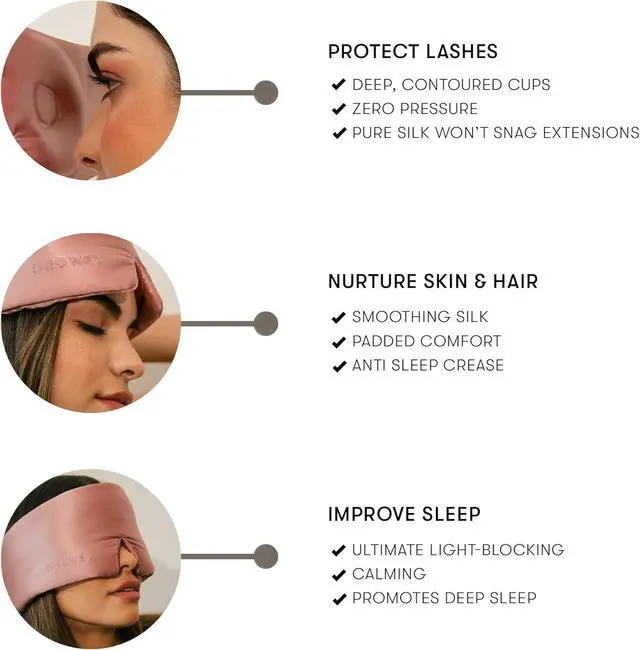 Eyelash Protection: Designed with deep contoured eye cups to protect natural lashes and extensions from nightly damage. Zero pressure.