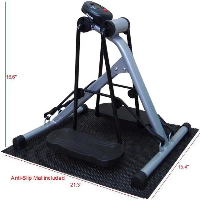 * Product size (assembled): 21.38 L x 15.3 W x 17 H inches. * LCD display pedometer using 1 x AA battery (included).
