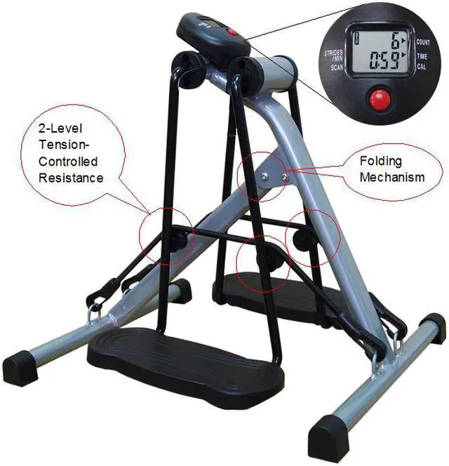 LCD display computer: scan, time, count, calories. * With tension controlled resistance (2 levels). * With anti-slip mat. * Fully assembled and yet foldable with compact design, convenient for moving and storage, simply slide it in under desk.