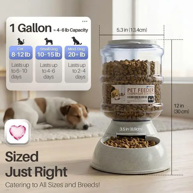 The Auto Replenish Food Dispenser allows fewer refills, convenient for busy owners. It's compact and lightweight form factor makes it portable & easy to carry around. Made of PET plastic, the dispenser station is toxic free and more sustainable than our PVC counterparts. Bases feature Antimicrobial Protection that helps prevent the growth of stain and odor-causing bacteria. An ideal solution for small to medium sized dogs, cats and pet animals