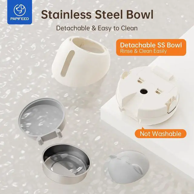 Of course. This auto cat feeder adopts a split design and can be directly rinsed with clean water to avoid bacterial growth.